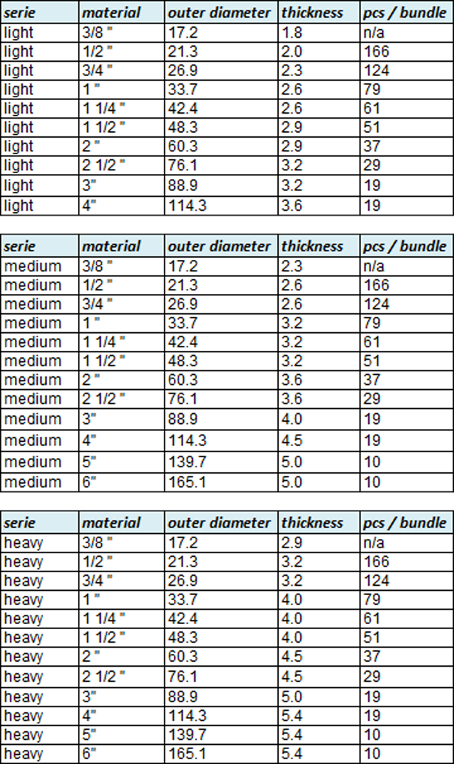 S195 , S235 , S275 , S355 ACC TO EN10255 GRA, GRB ACC TO ASTM A53 & A795 P195,P235,P265 ACC TO EN 10217-1 |